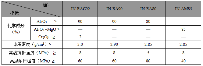 ·JN系列電爐頂預制件主要理化指標·