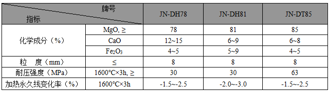 · JN系列電爐底干式搗打料主要理化指標 ·